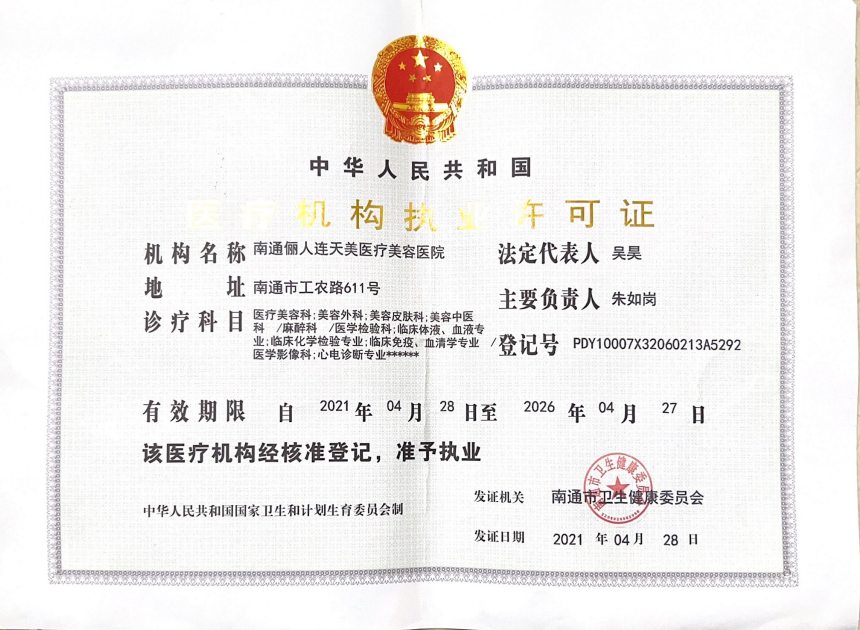 南通儷人連天美醫療美容醫院分為兩大科室,整形美容科和皮膚美容科。參與社會公益實踐活動主要是在幫助他人、服務社會的過程中開闊視野、提升能力和完善自我。